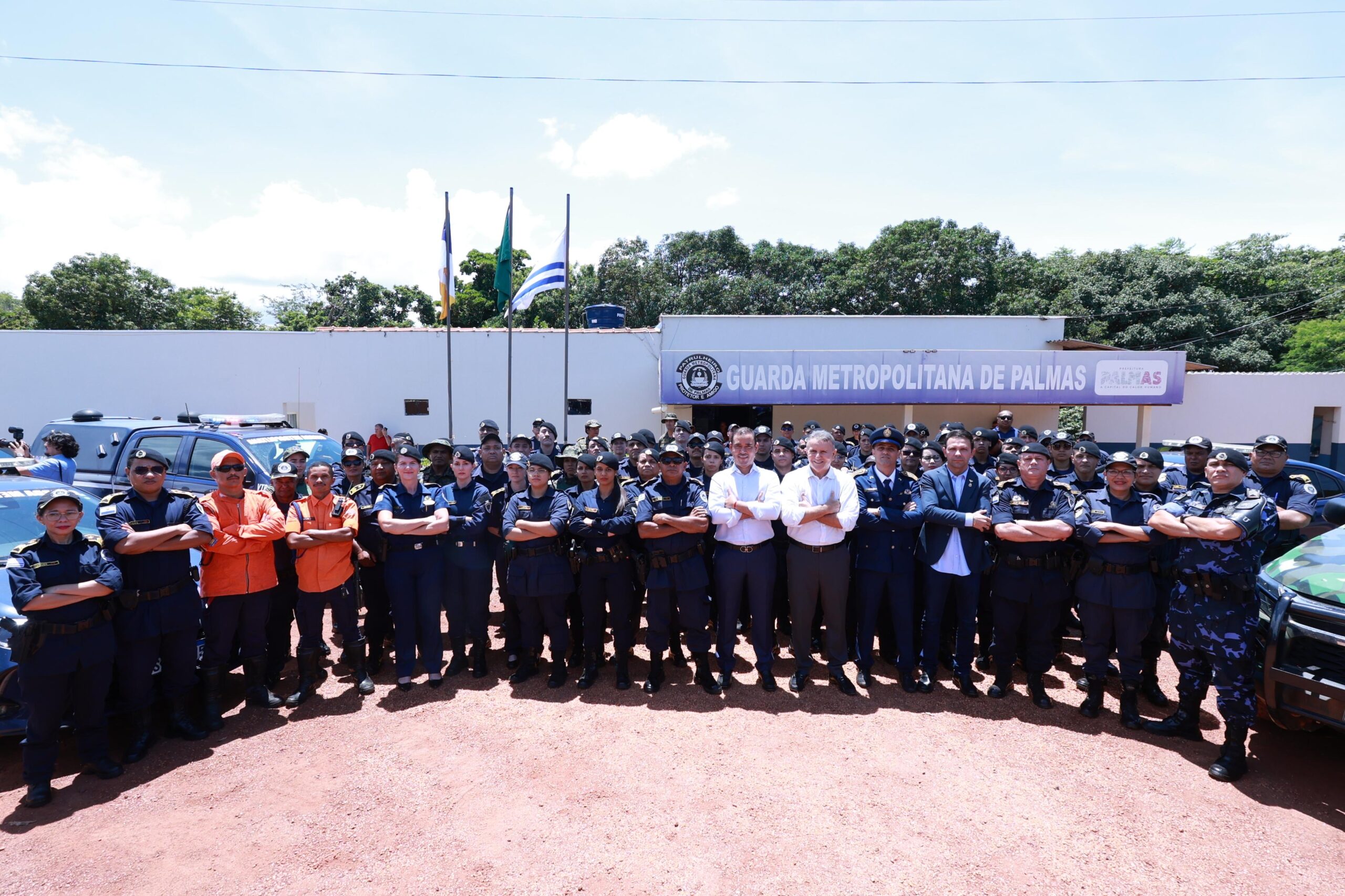 Com a destinação de emenda no valor de R$ 1 milhão, o deputado federal Vicentinho Júnior garantiu a viabilidade para a reforma e ampliação das instalações da Guarda Metropolitana de Palmas. Na manhã desta segunda-feira, dia 19, o parlamentar participou da cerimônia de assinatura da ordem de serviço, ato oficial realizado pelo prefeito Eduardo Siqueira Campos, que estava acompanhado da secretária de Assistência Social e primeira-dama, Pollyana Marques Siqueira Campos, vereadores, secretários, e membros da corporação. “Quanto mais investimento e valorização da segurança, é menos criminalidade na porta dos palmenses”, disse o parlamentar. Houve também entrega de uniformes, equipamentos, instrumentos musicais e drones. O investimento total é de R$ 1,4 milhão.