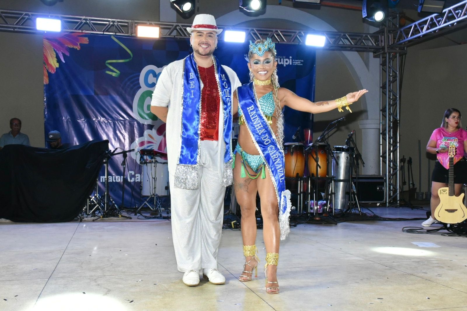 Em uma festa animada ao som do axé de Kaçula e da banda Mil Volts, aconteceu a escolha da Rainha e o Rei Momo do Carnaval 2026 de Gurupi, na noite deste sábado, 07, no palco externo do Centro Cultural Mauro Cunha. Neste ano, quatro mulheres e quatro homens disputaram o título, demonstrando simpatia, animação e muito samba no pé.