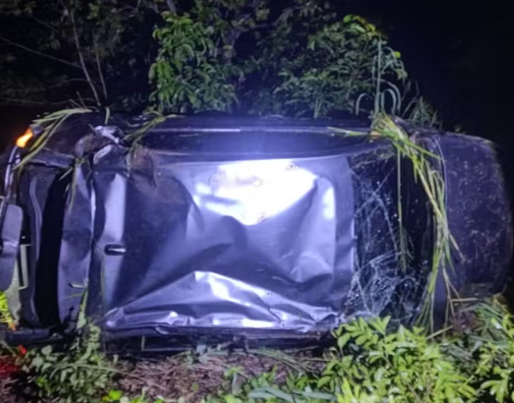 Segundo o Corpo de Bombeiros, o motorista relatou que o carro bateu de frente na motocicleta, saiu da pista e capotou cerca de cinco vezes. Os ocupantes do veículo usavam cinto de segurança.