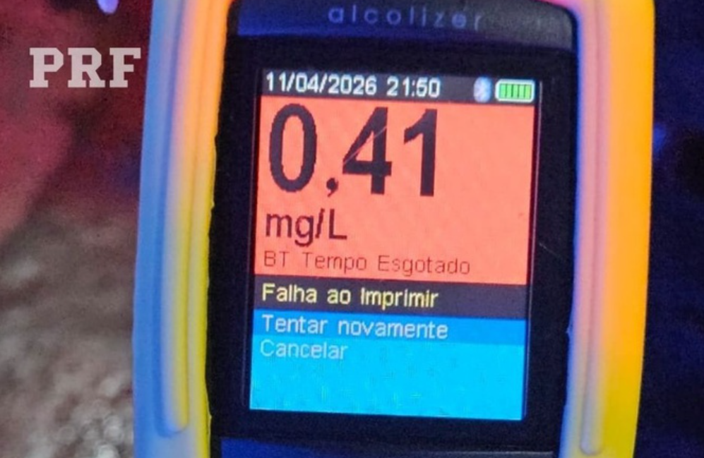 Já no dia seguinte (11), por volta das 21h25, no km 160 da BR-153, em Araguaína/TO, em fiscalização, a equipe foi informada por um usuário sobre uma motocicleta trafegando sem iluminação traseira. Ao visualizar o veículo, o condutor tentou evitar a abordagem, sendo acompanhado pela equipe e posteriormente interceptado. Na abordagem, o condutor demonstrou nervosismo, confessou ter ingerido bebida alcoólica e admitiu não possuir CNH. Submetido ao teste do etilômetro, o resultado foi de 0,41 mg/L, corroborando os sinais de embriaguez observados.
