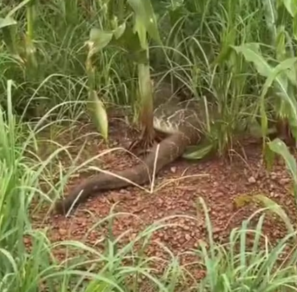 Nas imagens, a serpente aparece se rastejando até entrar em uma plantação de milho. Durante a aproximação, o animal chegou a dar um bote, fazendo com que o engenheiro se afastasse e continuasse a gravação de dentro do veículo.